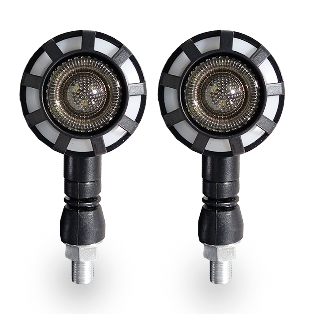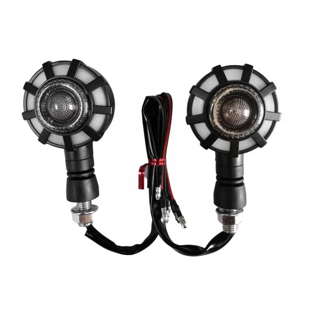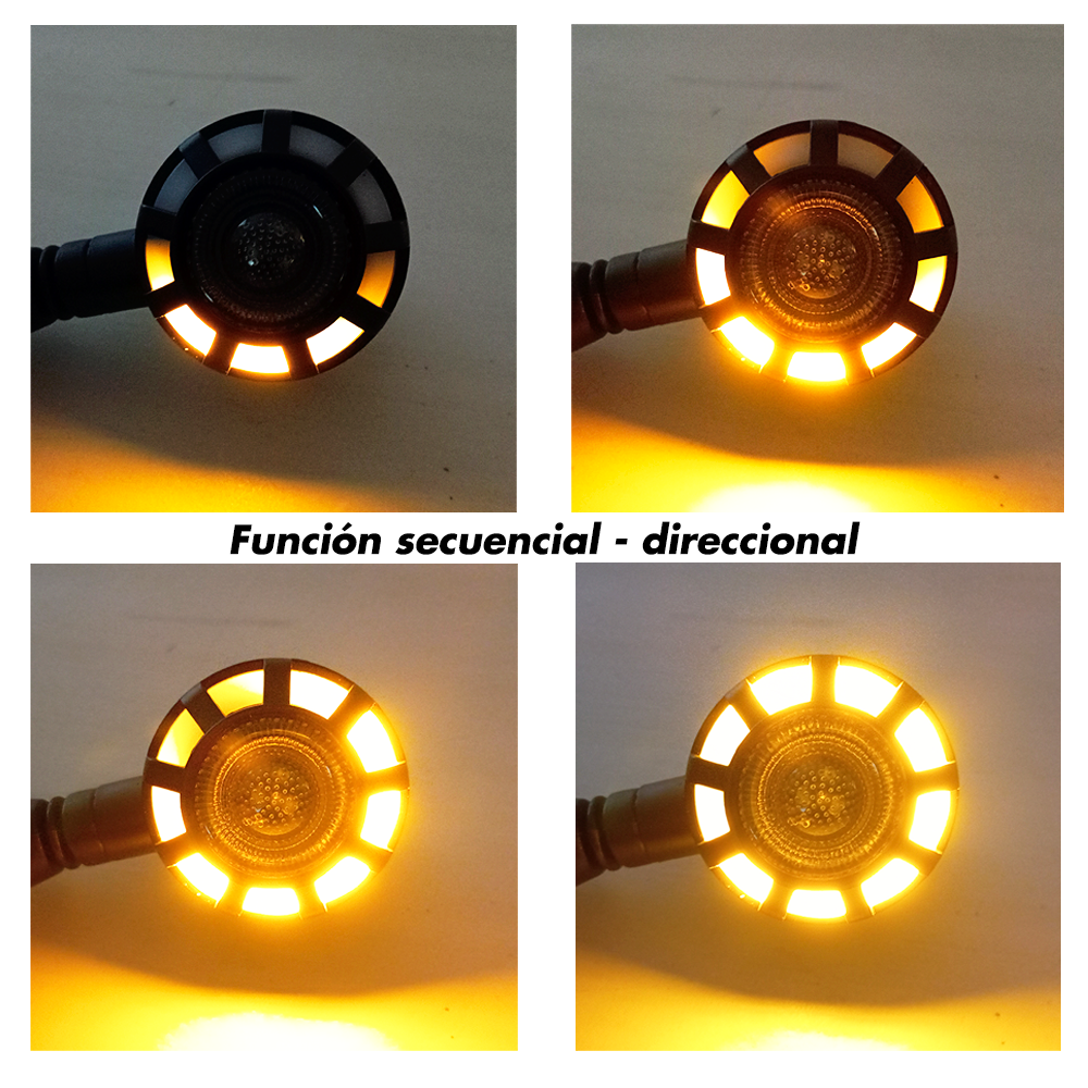 PAR DIRECCIONALES MOTO + RUNNING LUZ BLANCA POSICION Y AMARILLA GIRO DC